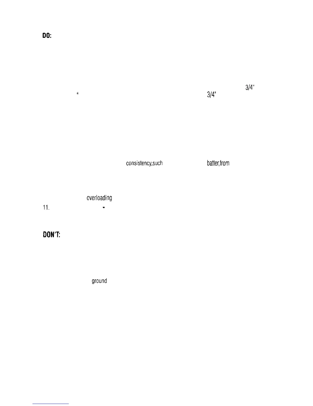 3. DON’T overload the motor with extra-heavy or extra-large loads. If the motor stalls, turn off immedi-