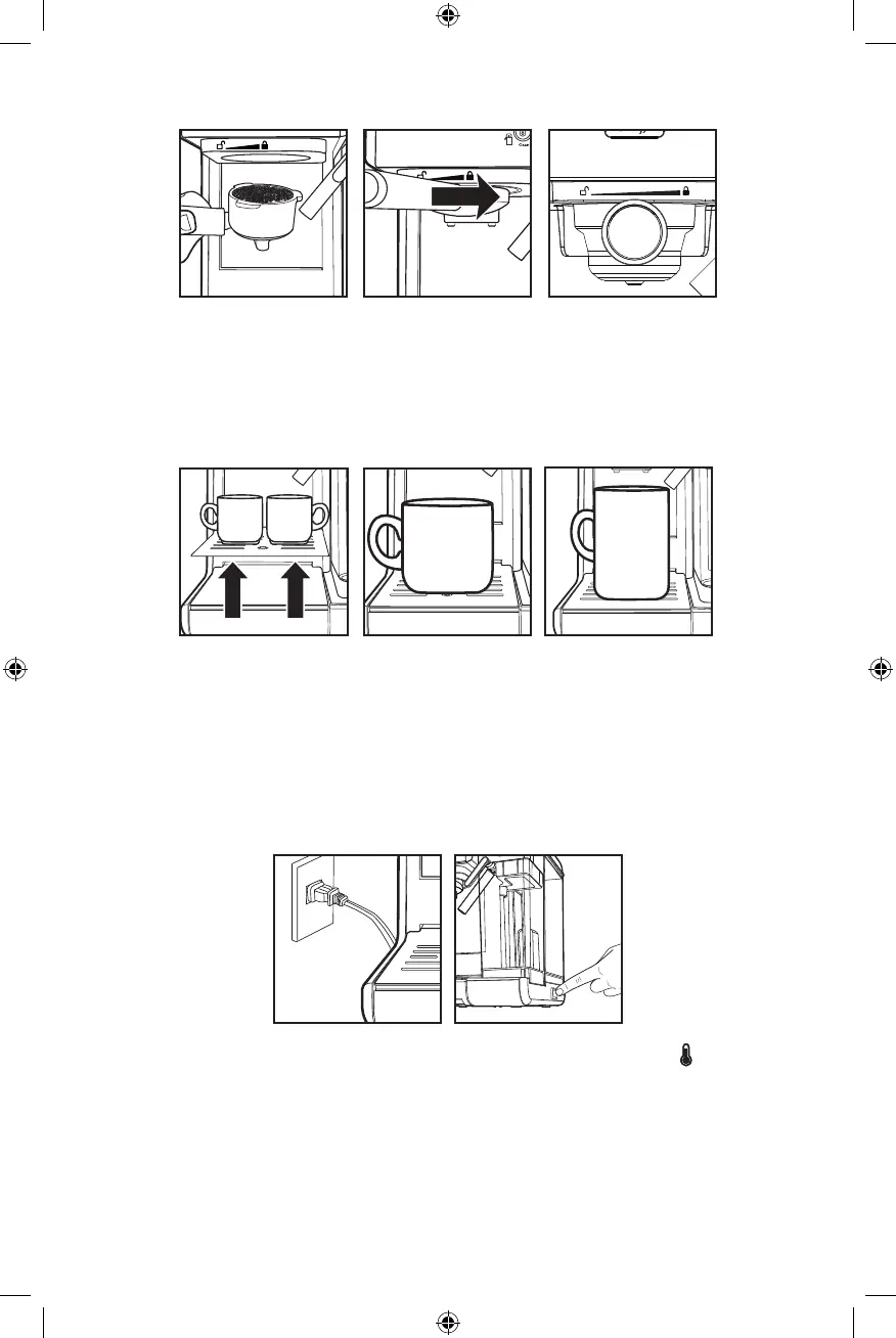 The control panel progress bar will illuminate (Espresso heater and Steam heater “ ”) during the