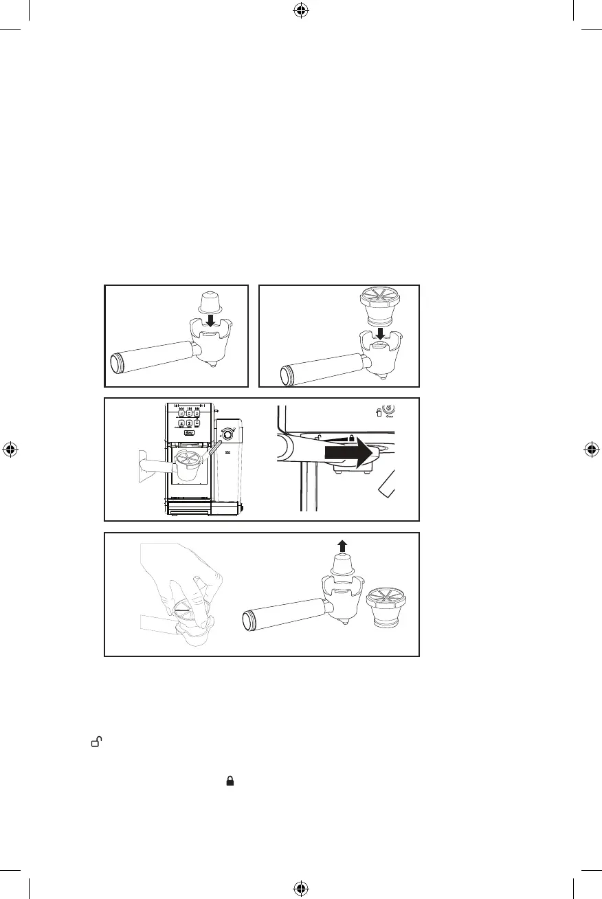 b. Coloque o suporte da cápsula no suporte do ltro e alinhe-o usando as 3 abas e pressione