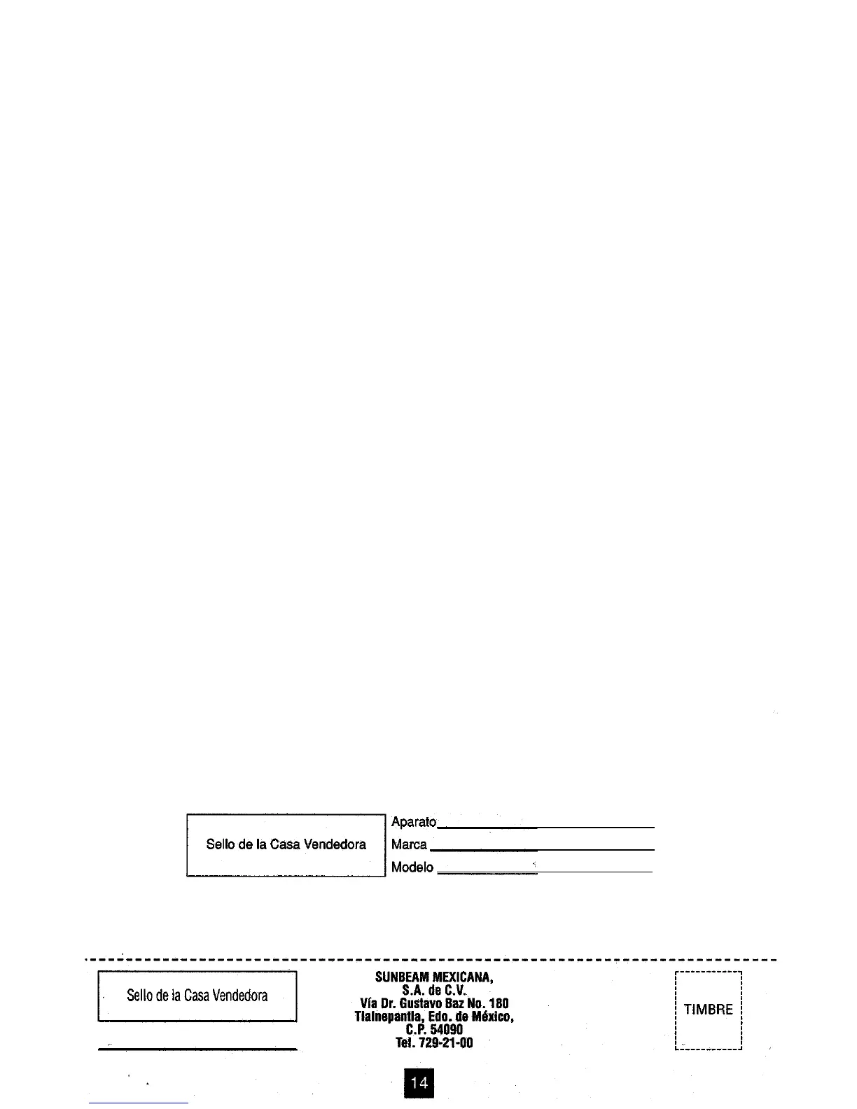3. Los Talleres de Servicio Autorizados por Sunbeam Mexicana. S.A. de C.V., repararán y