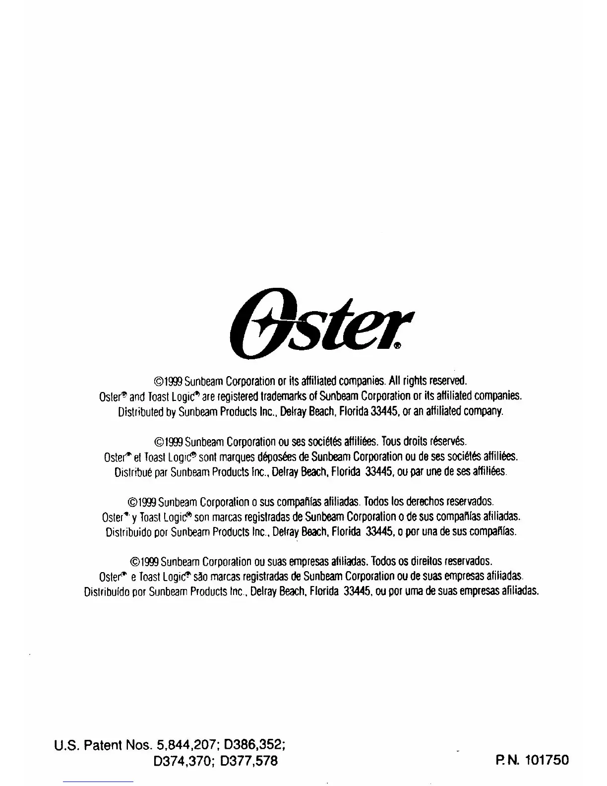 Oster”, y Toast Logir? son mamas registradas de Sunbeam Corporation o de sus compafltas afiliadas.