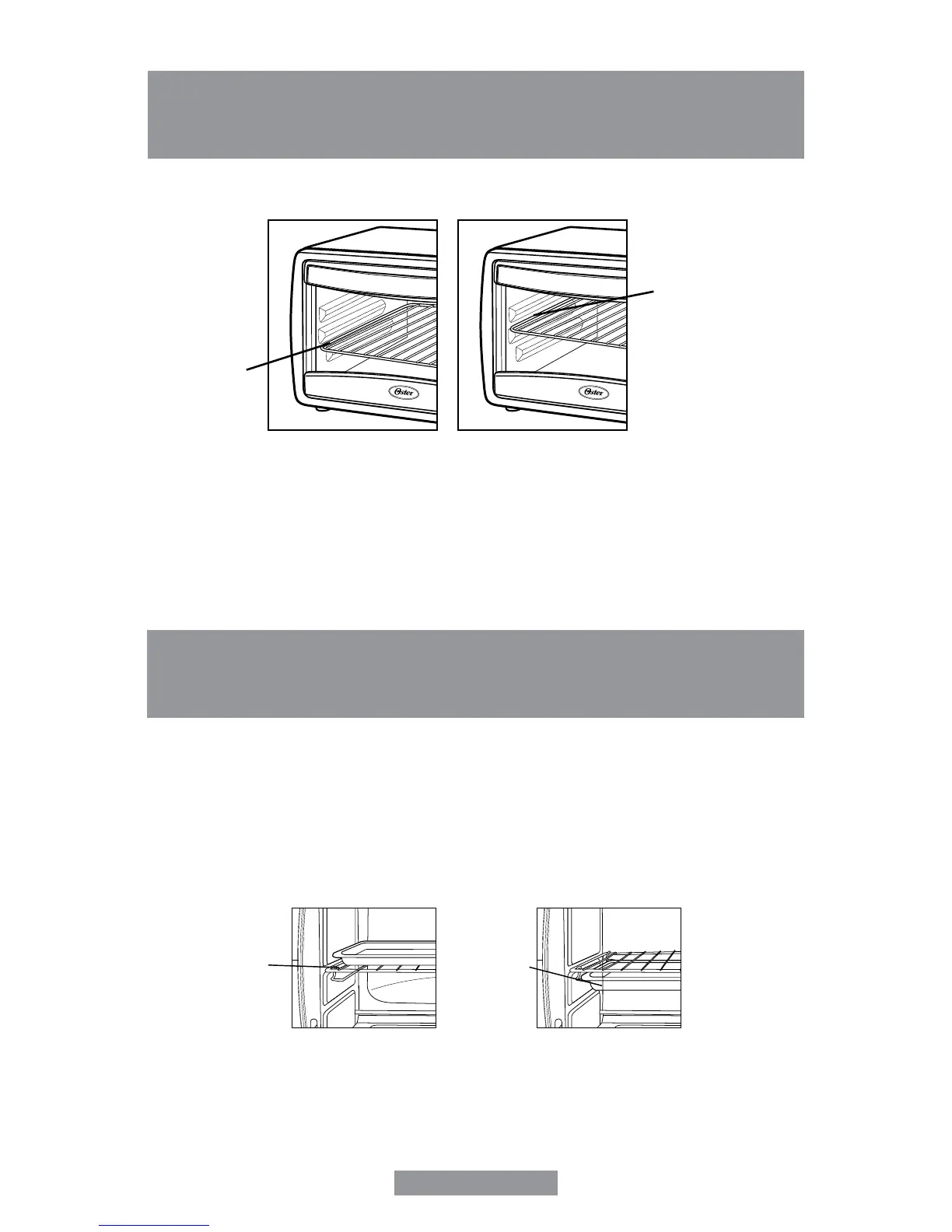 • Positioning of the oven pan will depend on the desired cooking method. For baking,