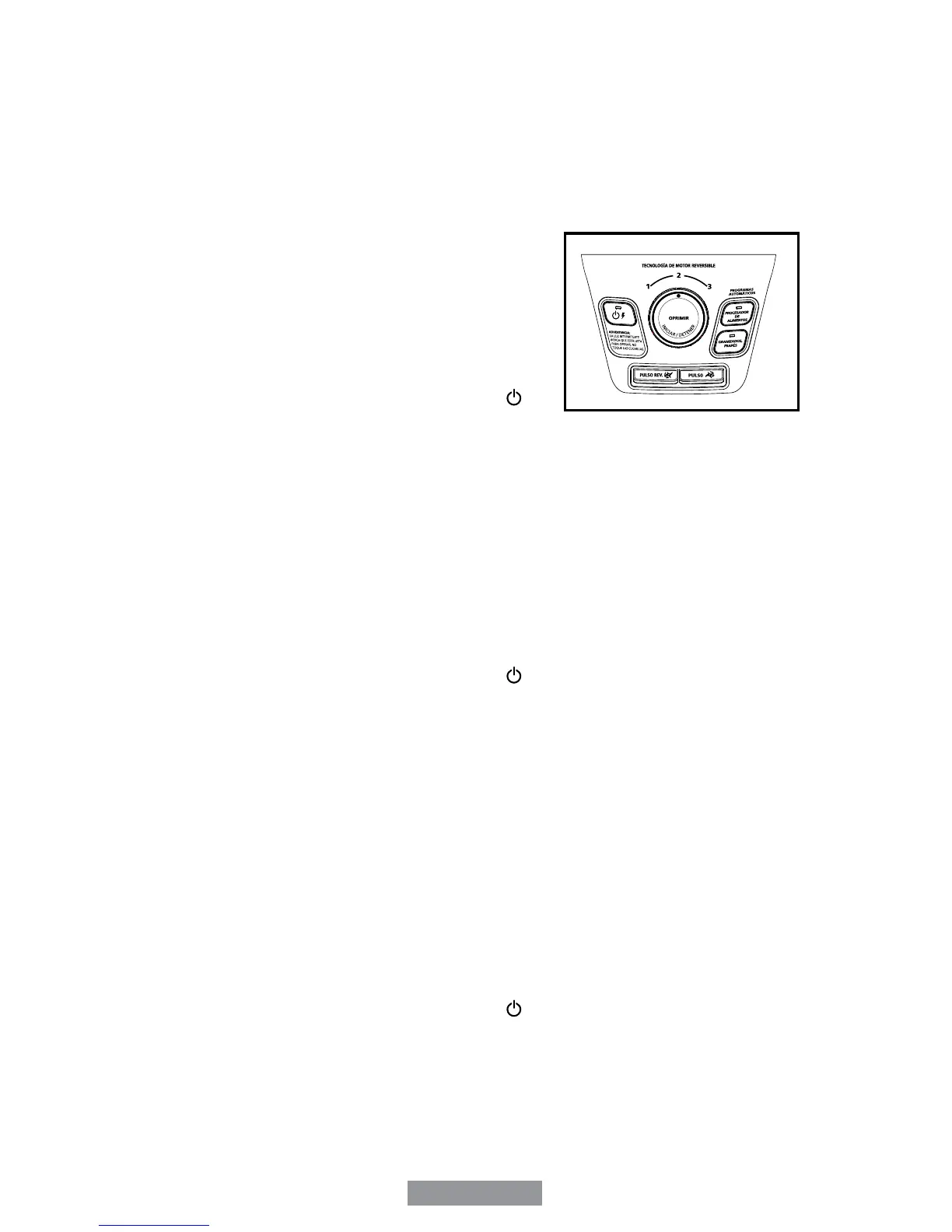 1. Uso del botón para licuar en reversa (usar únicamente con el vaso de licuadora)