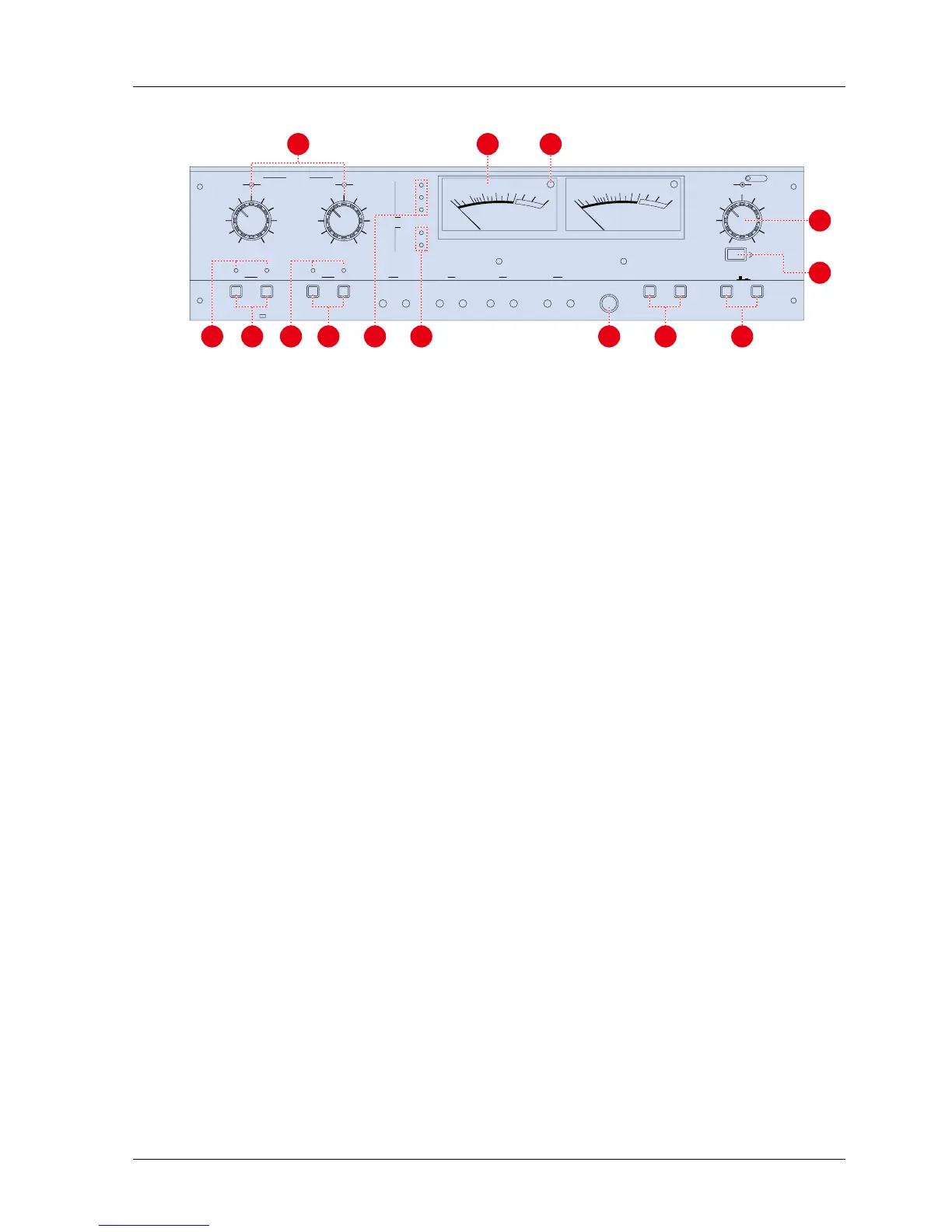 [3] Peak Level Indicators (LED) Each VU meter has a PEAK level indicator which illuminates when the signal reaches a level
