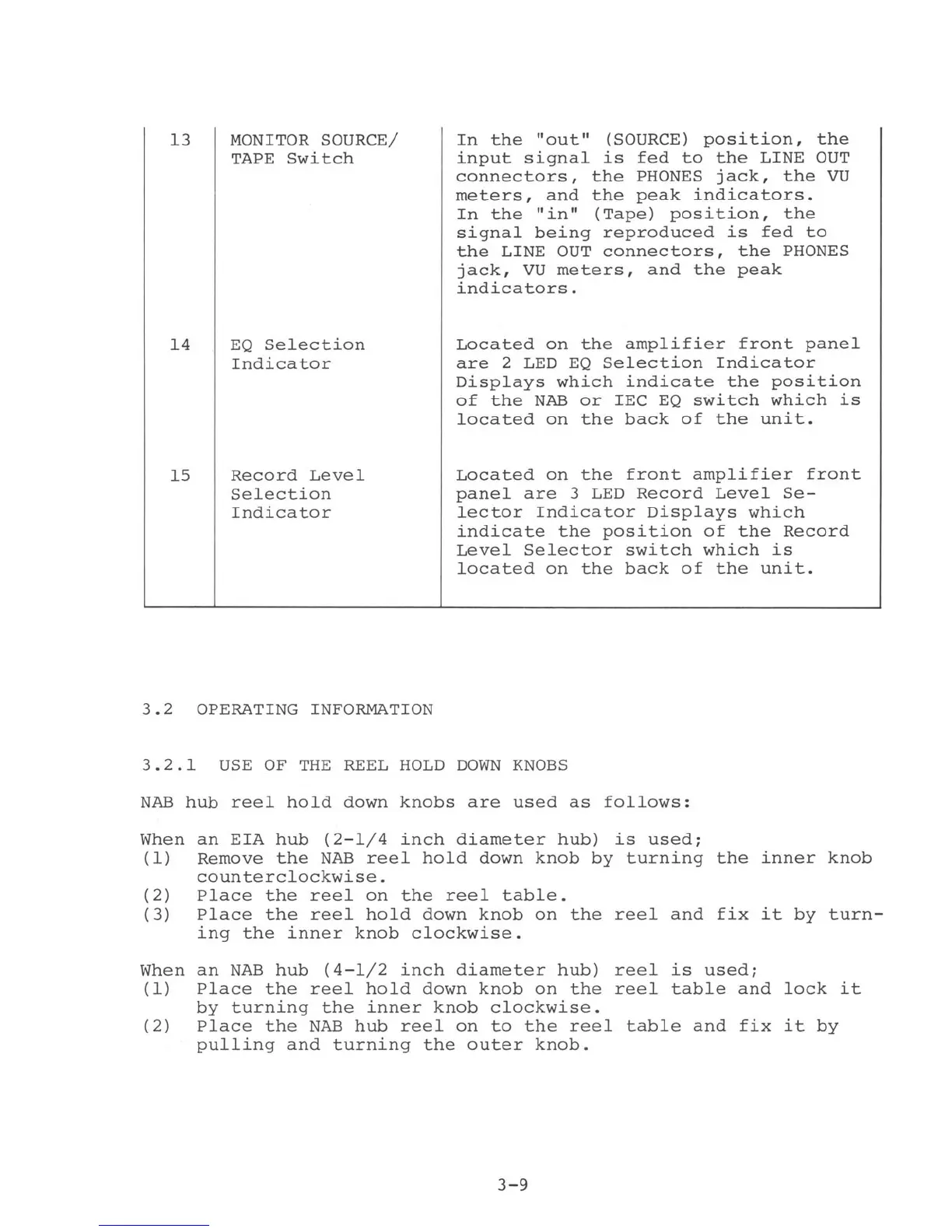 OTARI MX-5050BII - Operating Information; Use of the Reel Hold down Knobs