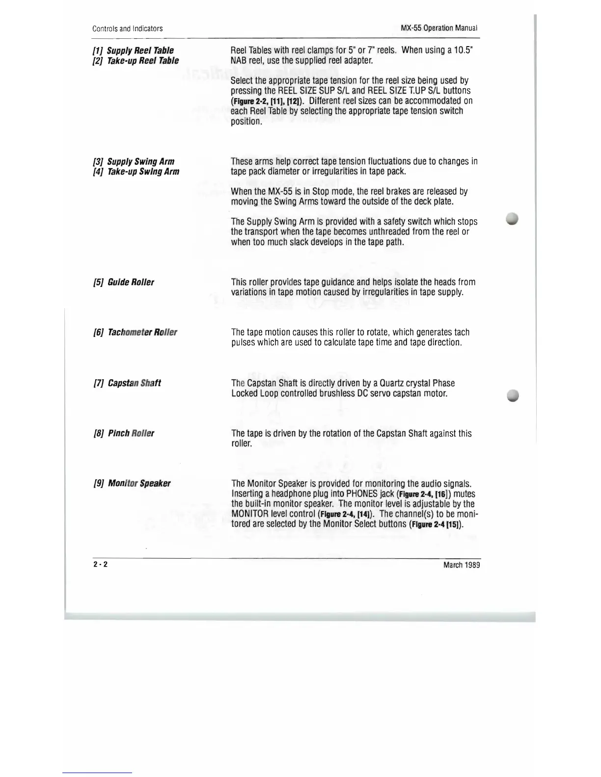 OTARI MX-55T-N-M - Supply Reel Table;Take-Up Reel Table; Supply Swing Arm;Take-Up Swing Arm; Guide Roller; Monitor Speaker