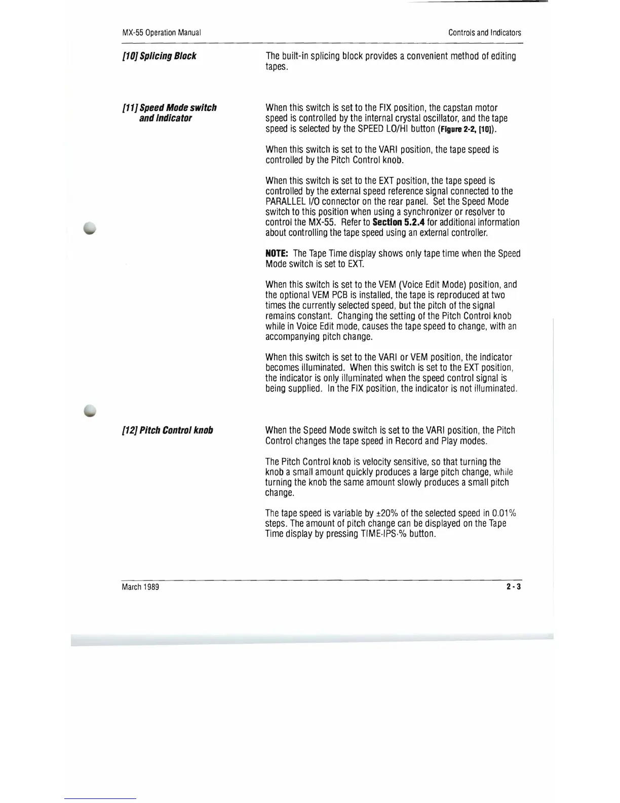 OTARI MX-55T-N-M - Section 2: Controls and Indicators (Continued); Transport Operation Controls
