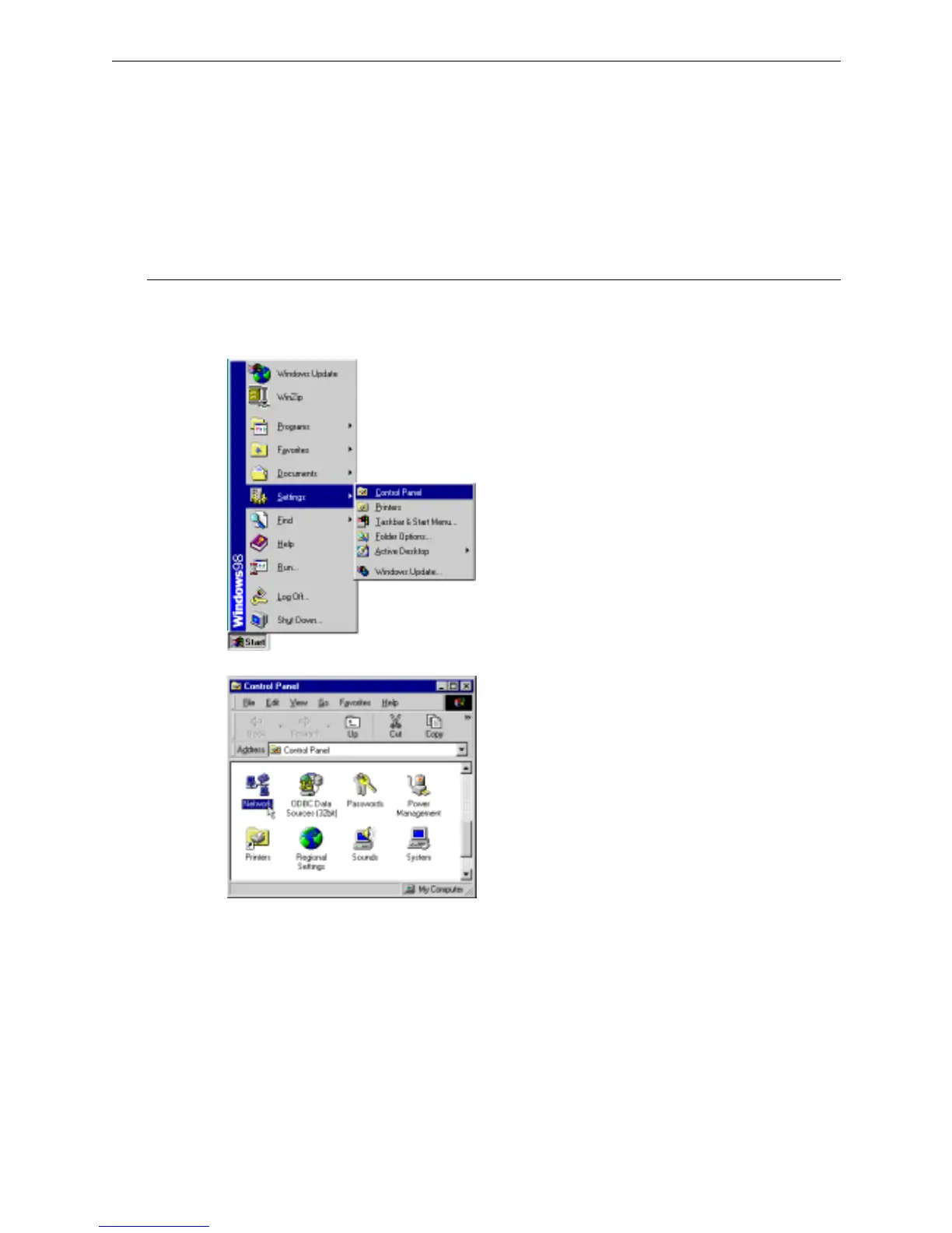 1. Click on the Start menu, point to Settings and click on Control Panel.