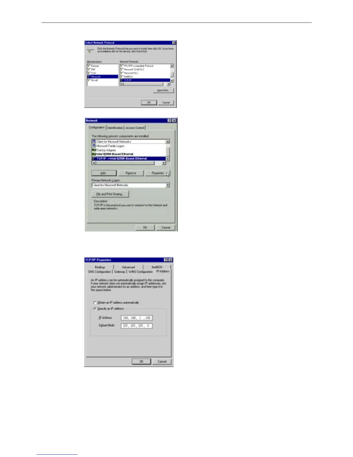 6. When returning to Network window, highlight TCP/IP protocol for your NIC and click Properties.