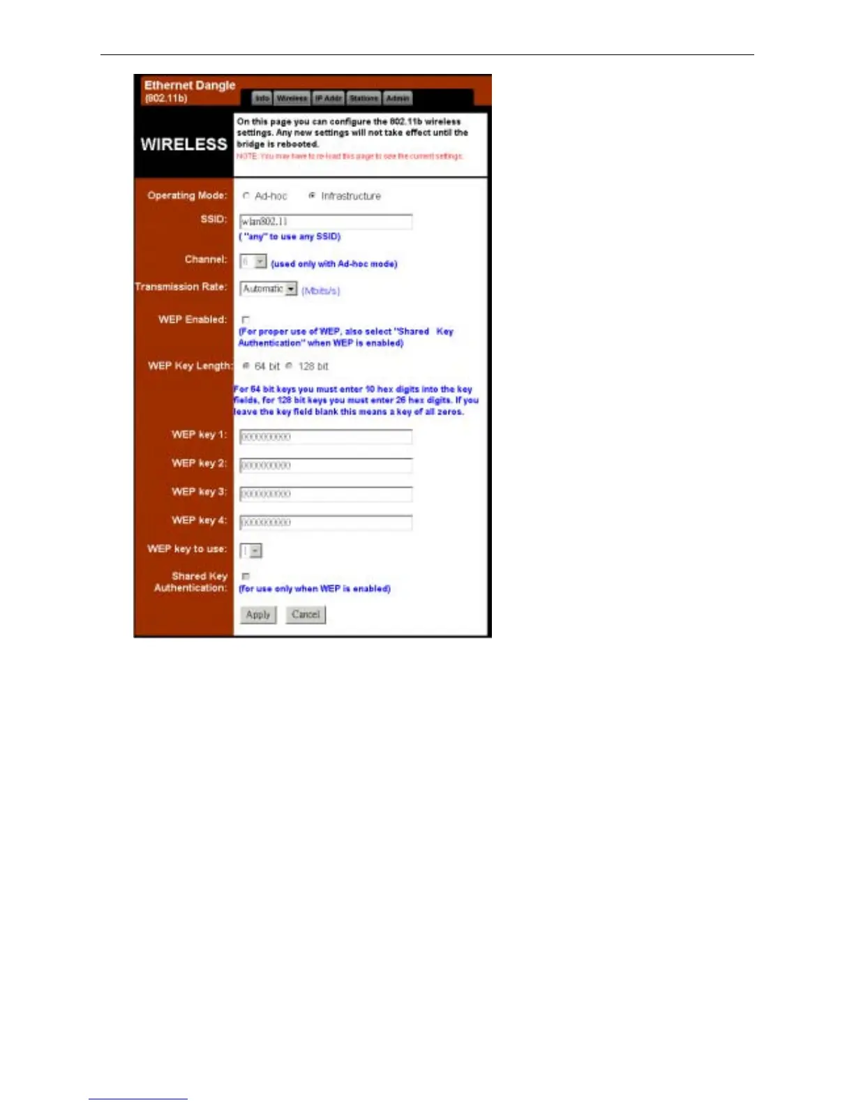 Shared Key Authentication: Check this item to use Shared Key function. If you do not check the box, the