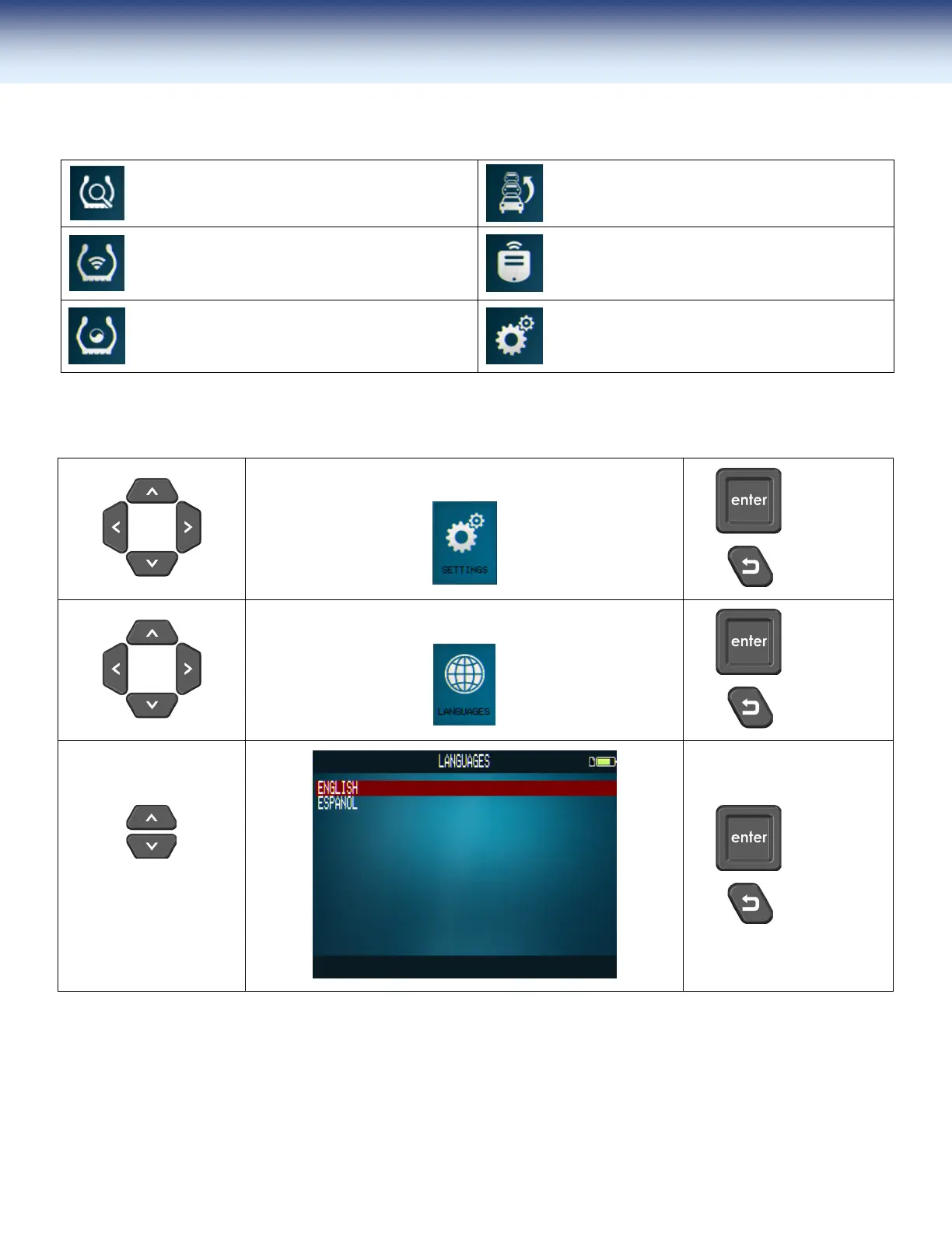LANGUAGE:selectdisplayedlanguageamongEnglish,Español.