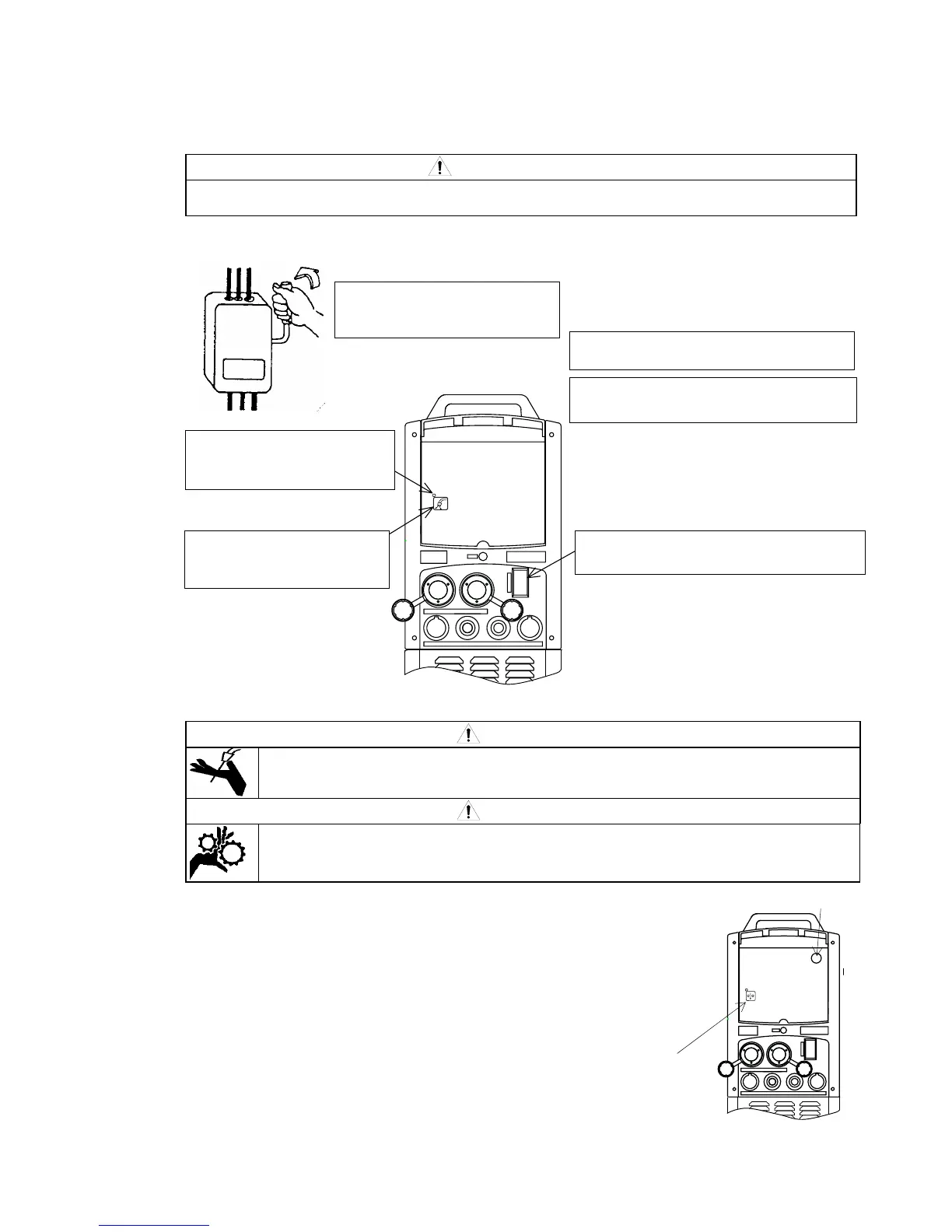 Do not look into the tip hole to check for the rate of wire feeding while inching.