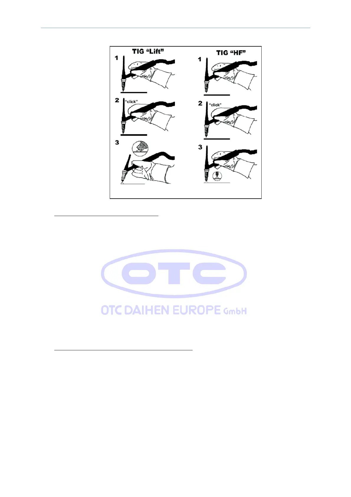 7b) The voltaic arc strikes even without contact between the TIG torch electrode and the work