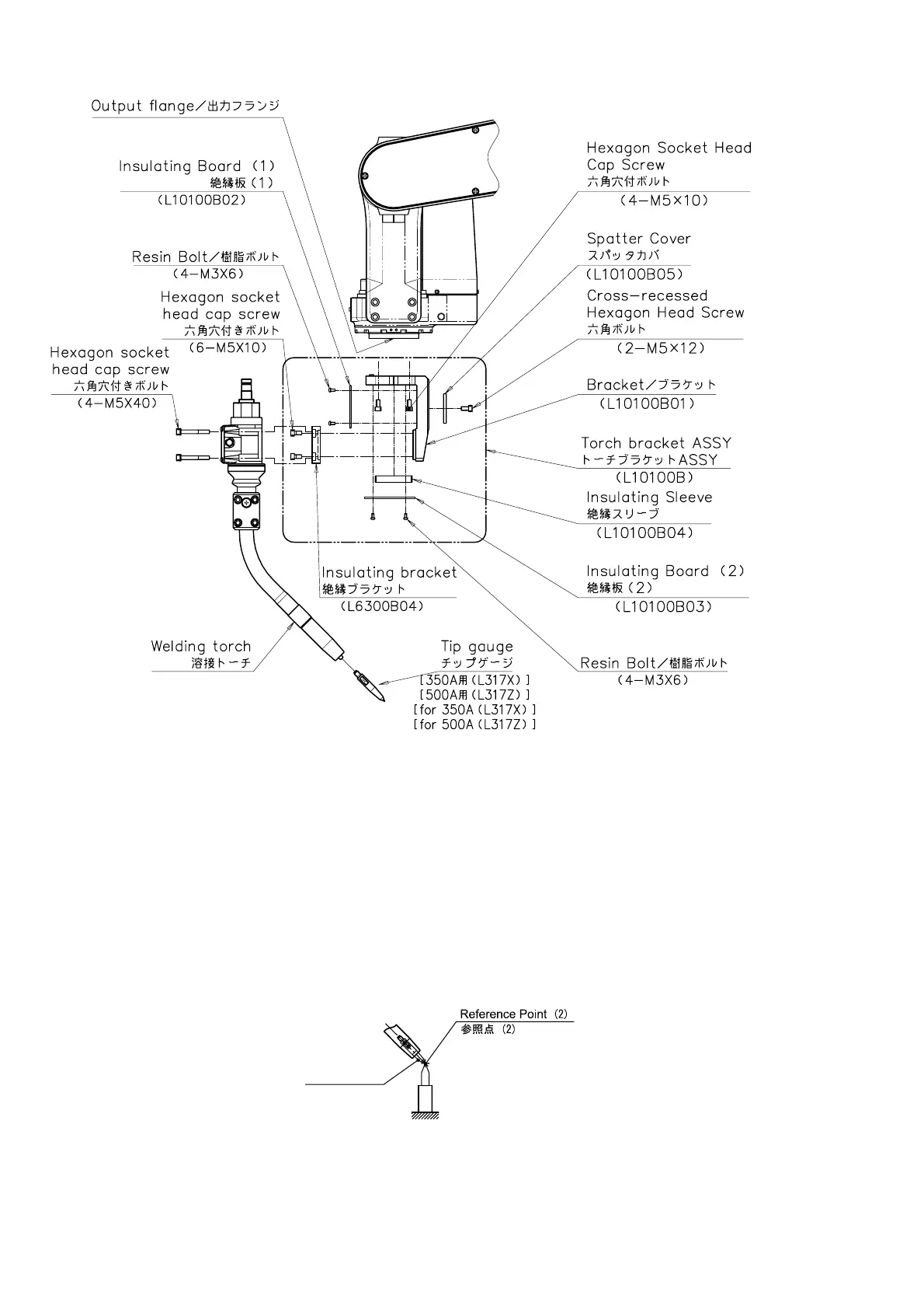 (2) Secure the tip gauge (L317X) to the torch.