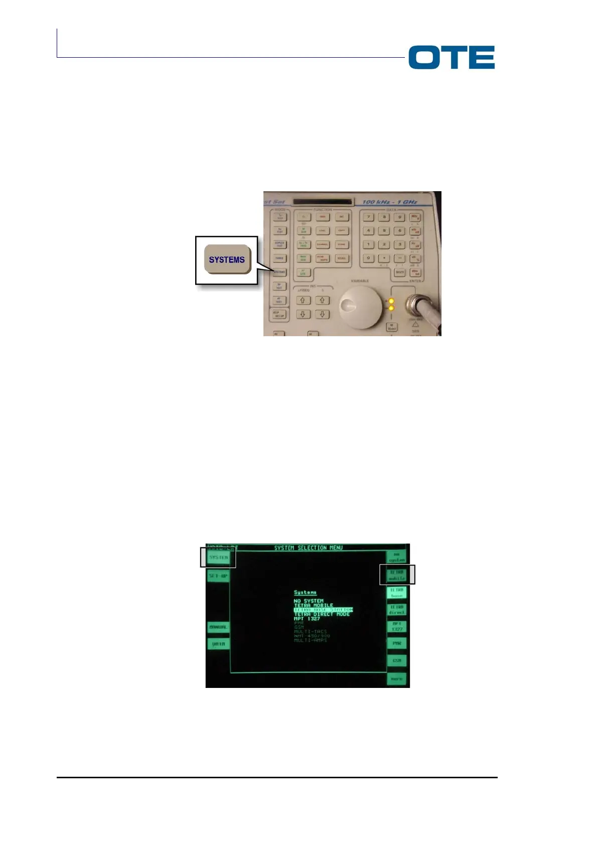 digital mode, press the ”SYSTEMS” key (see Fig. 7.2) to load the TETRA protocol.