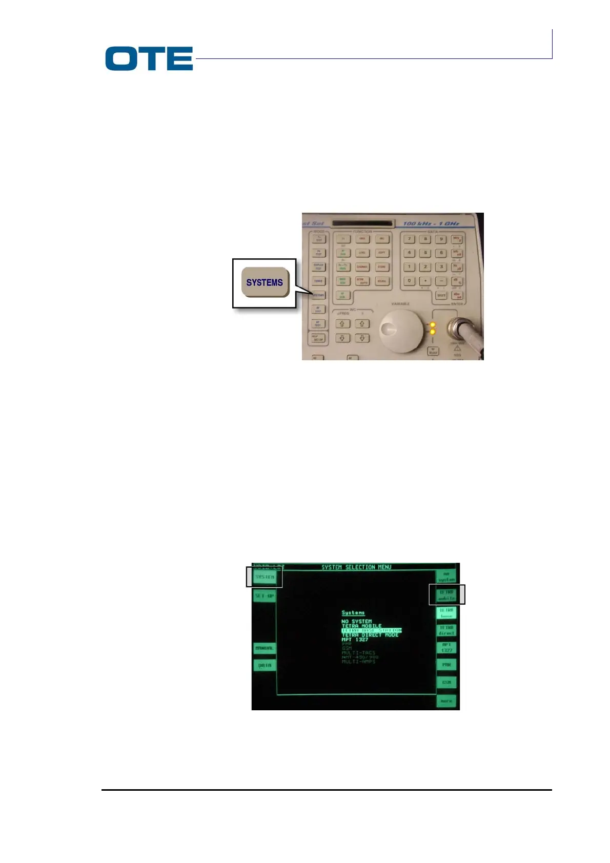 digital mode, press the ”SYSTEMS” key (see Fig. 7.2) to load the TETRA protocol.