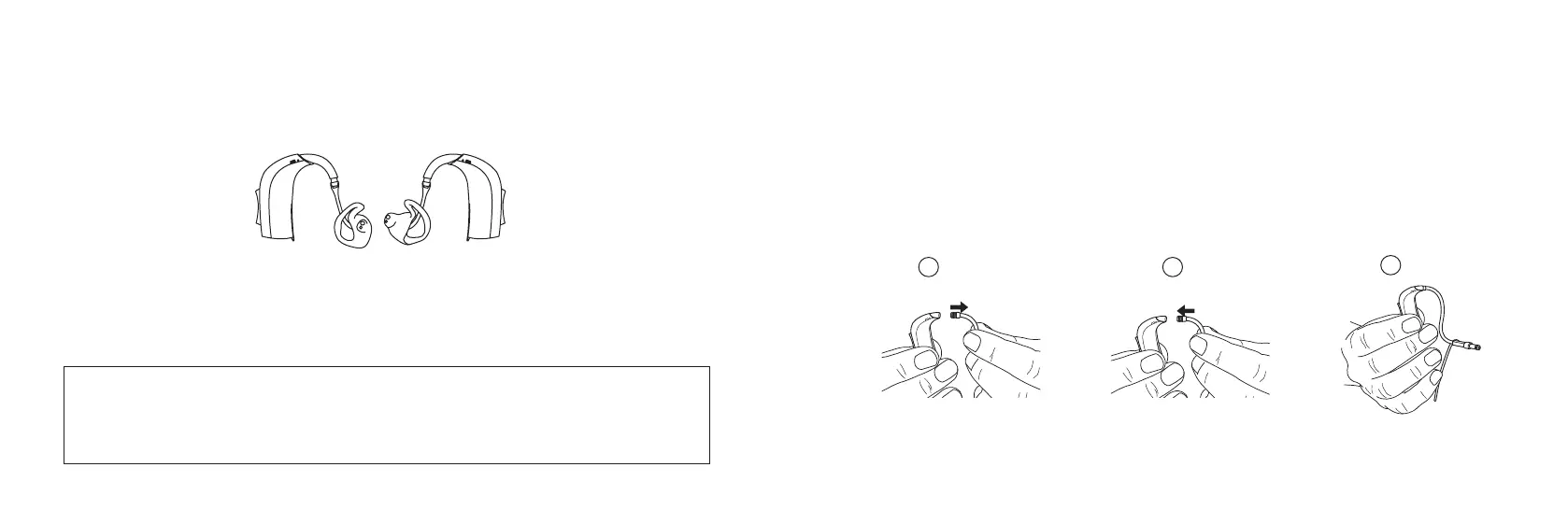 the hearing instrument. Be careful that left ear earmold and tubing are connected to