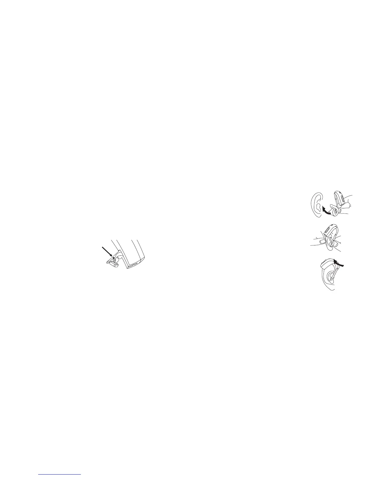 is pushed behind and under the fold (B) of your ear.