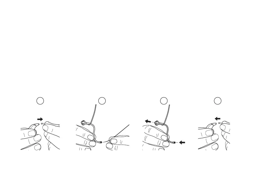 • Remove the tool and push the tube into the hearing instrument (4).