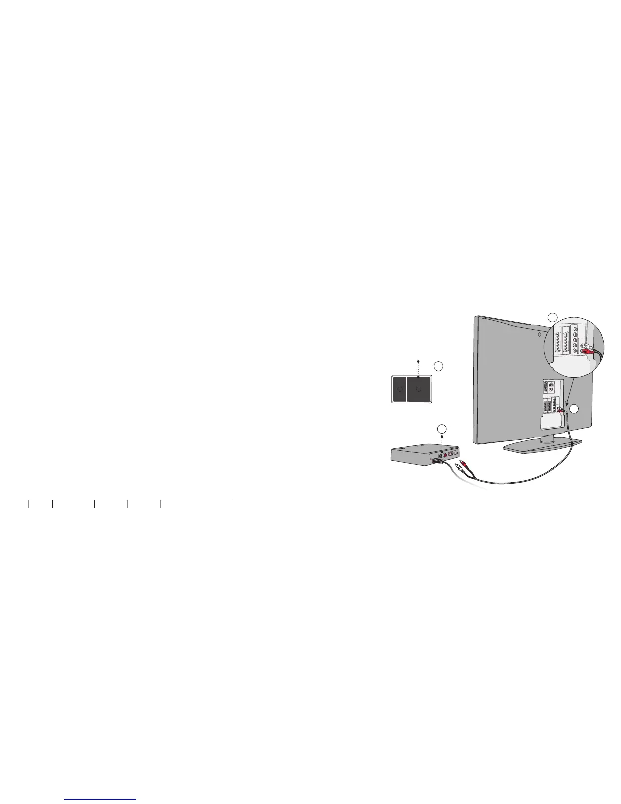2. Connect the RCA cable to the RCA output on your TV (B) or home theatre