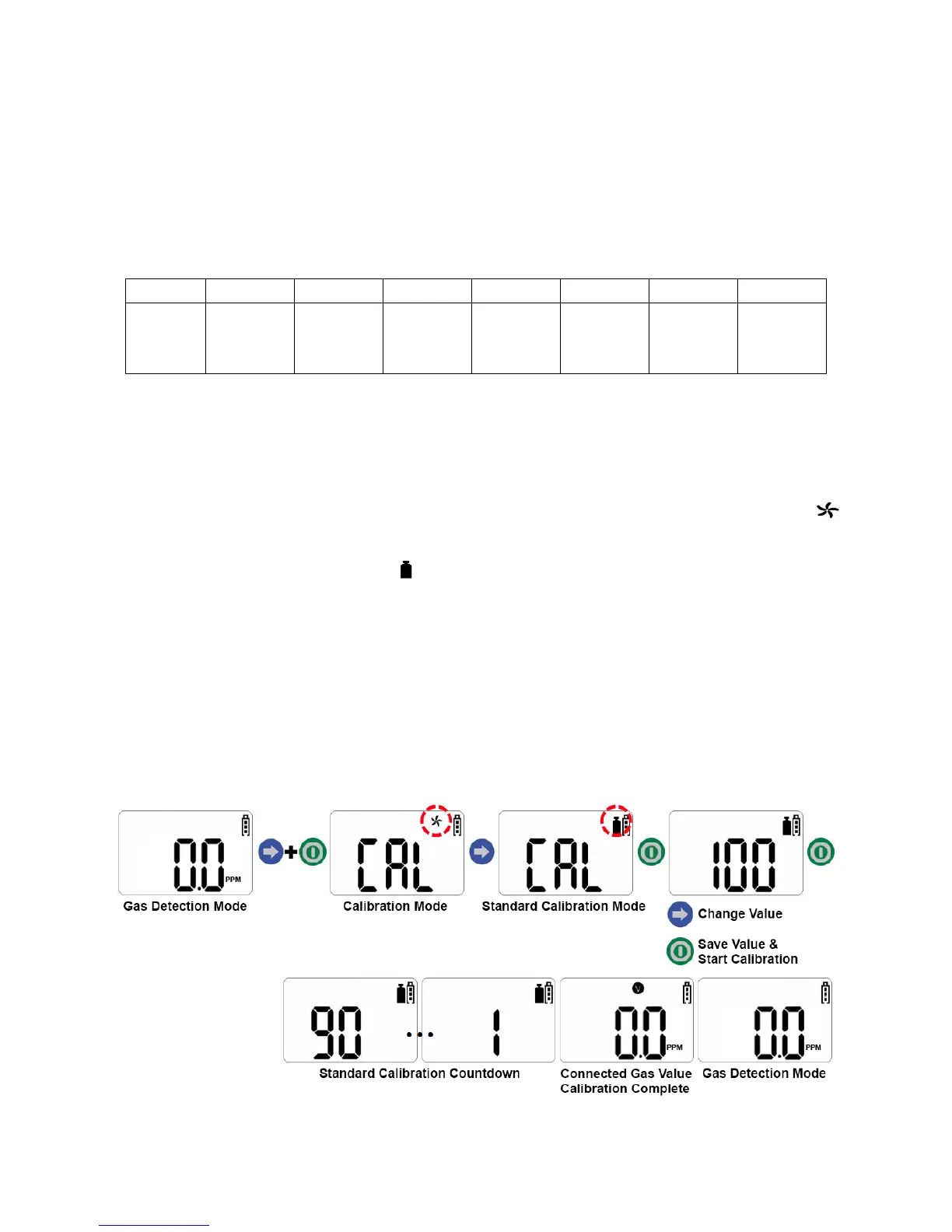 1. To enter Standard Gas Calibration Mode, press and hold the blue arrow button. While