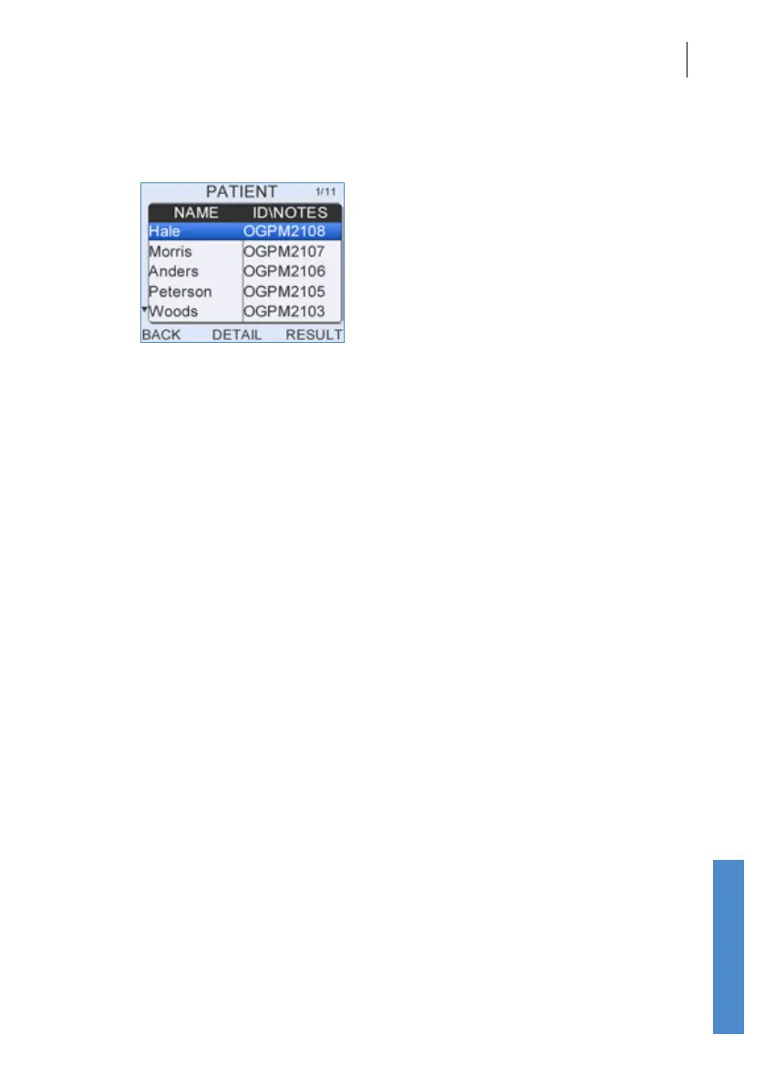 The Patient list displays the Name and ID/Notes eld for each patient. The