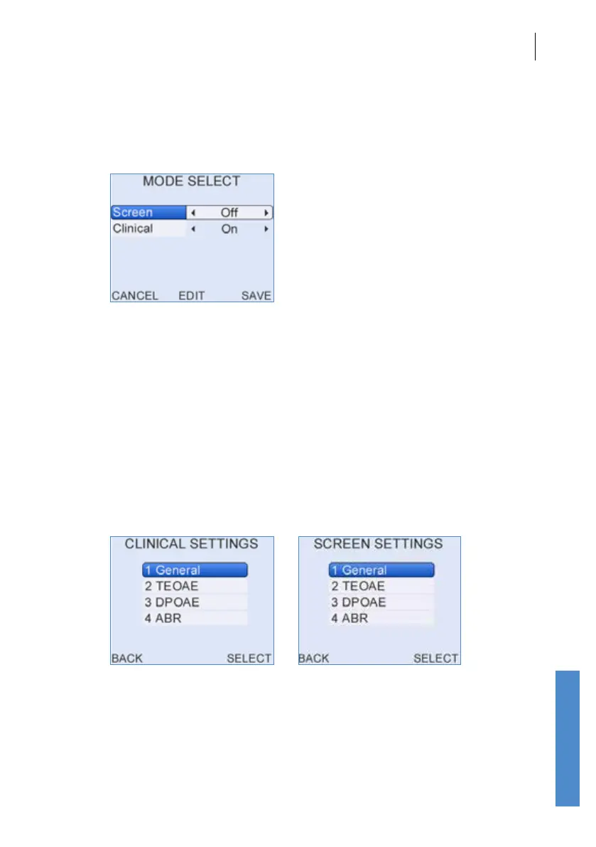 Clinical and Screen modes have identical set up options but the defaults