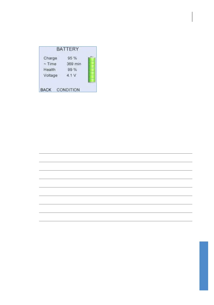 The Battery screen provides information on the current battery status.