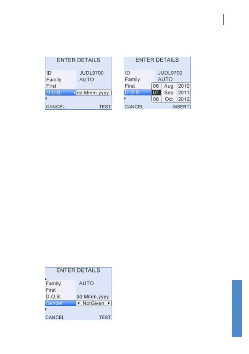 For example when entering patient details in the Gender eld, pressing