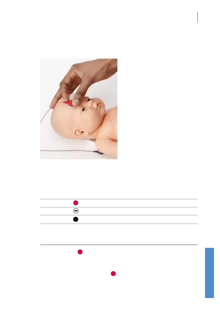 sensors. Connect the red cable to the high forehead, the white cable to the