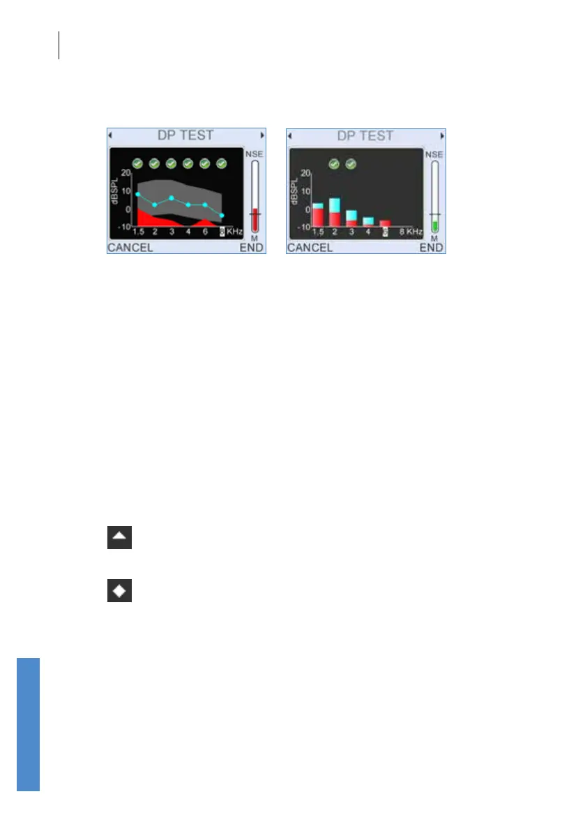 The blue dots or bars at each frequency show the DPOAE signal level and
