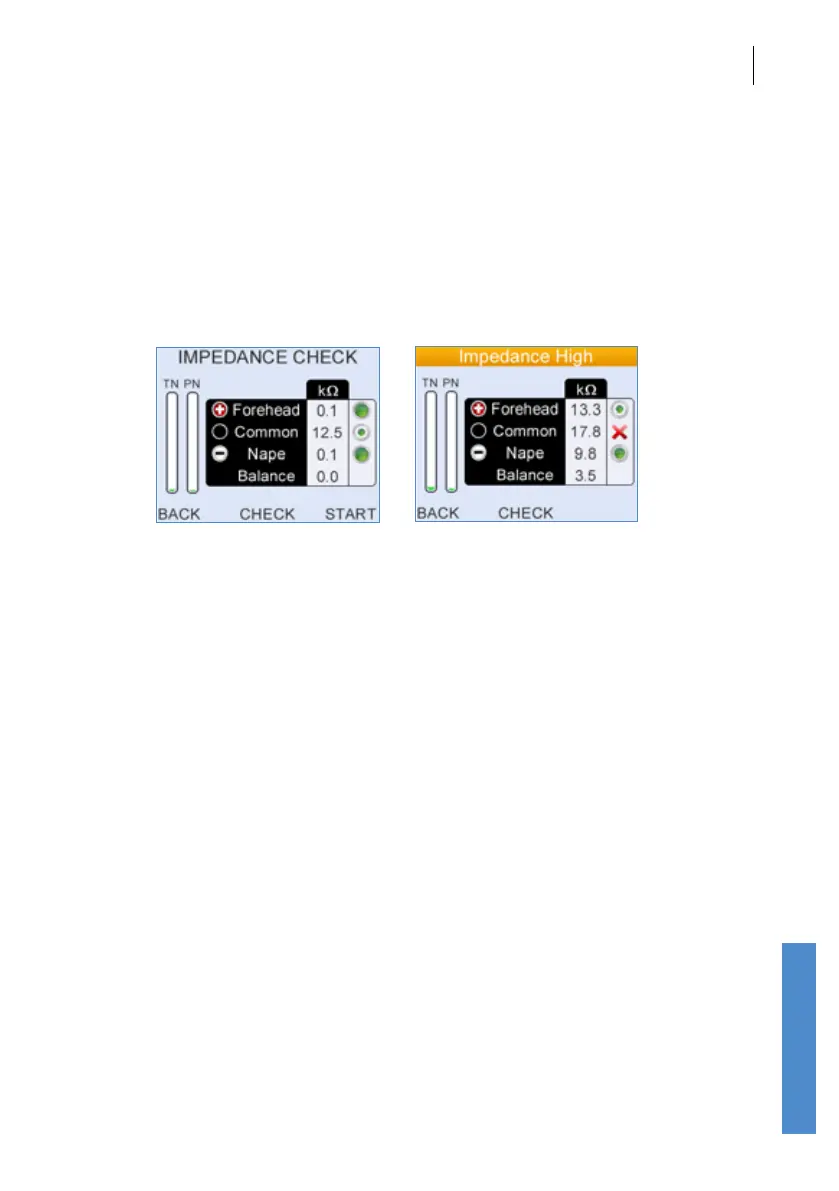 each of the three electrodes. This takes 2-3 seconds. A low impedance