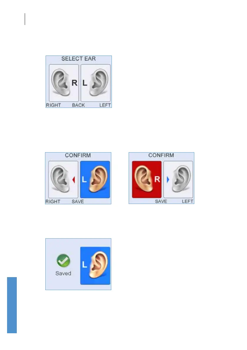 The Select Ear screen represents the patient facing you. By defaulting to