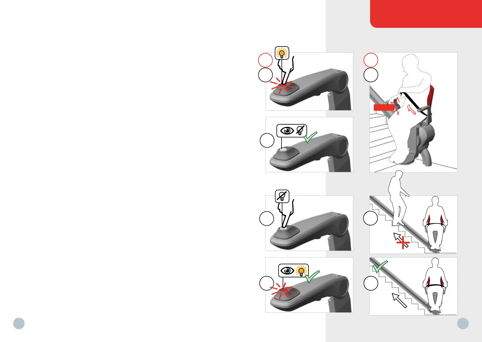 8 a/b N’utilisez le monte-escaliers que si l’escalier est libre.