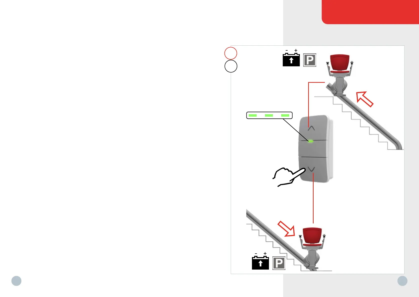 17 Posteggiare sempre il montascale su un punto di ricarica (P).