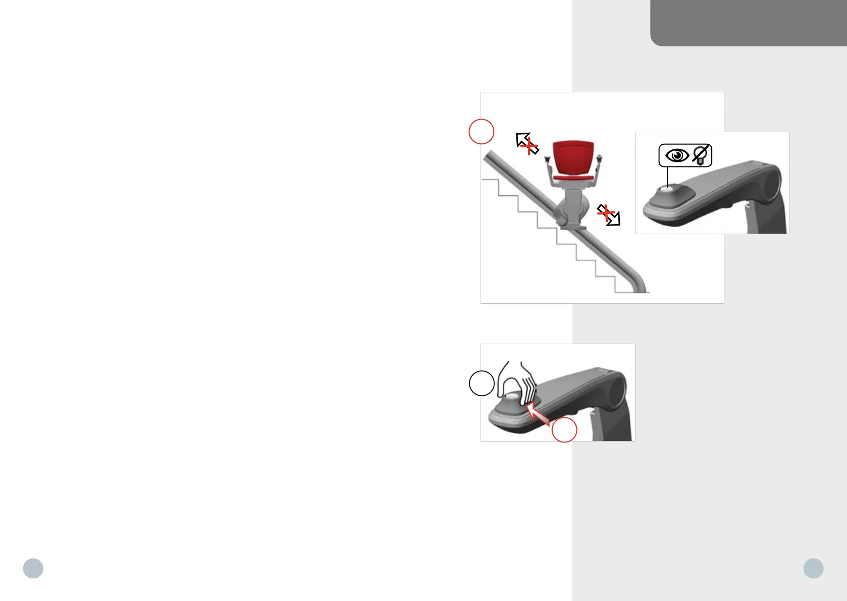 1 Azionare il montascale dal pulsante di comando sul bracciolo e