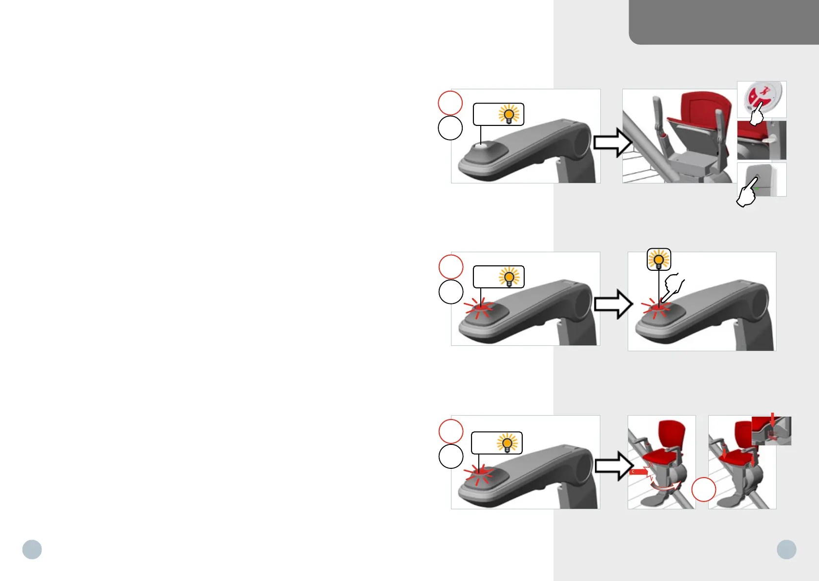 2 Clignote une fois après avoir relâché la commande : le monte-escaliers a