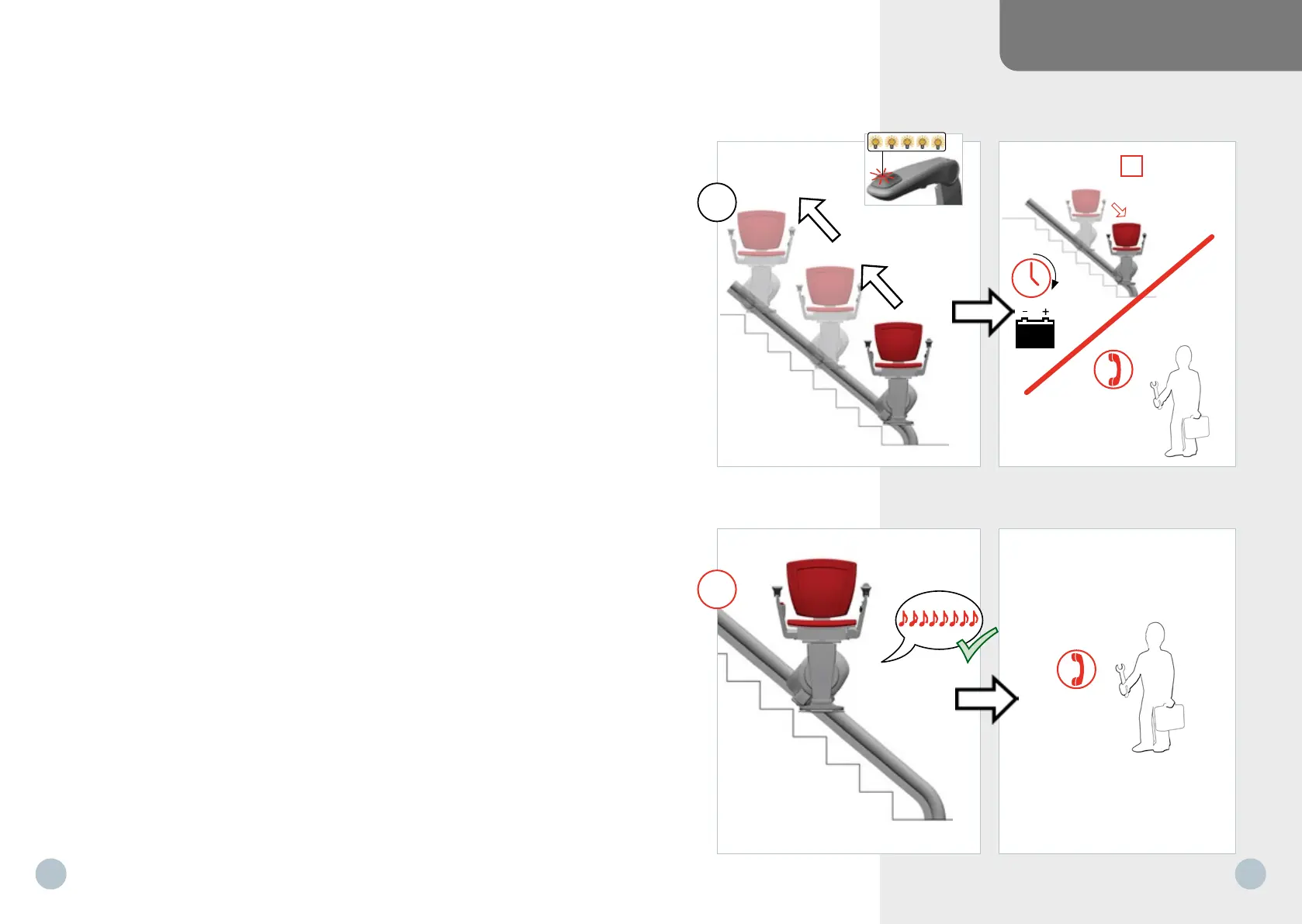 1 Si les batteries sont déchargées, le monte-escaliers s’arrête