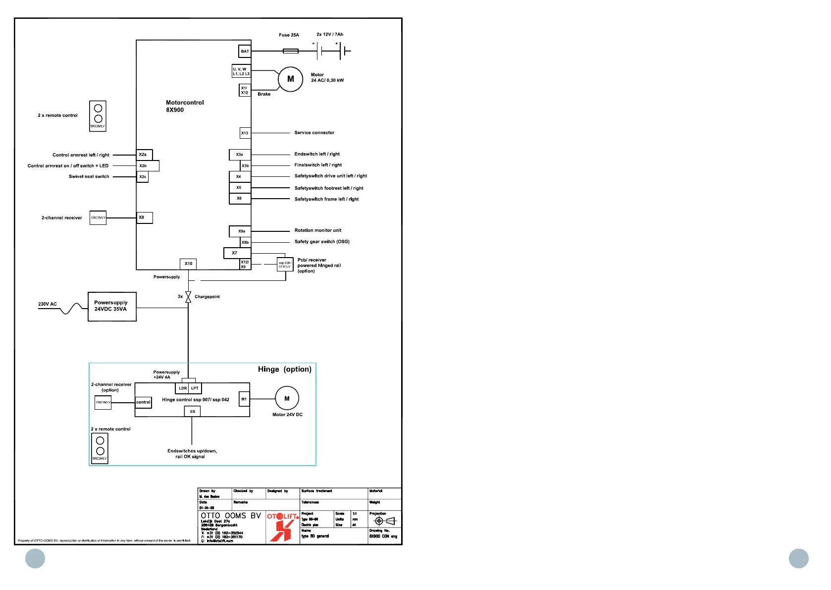 Elektrisch systeem Voeding spanning 24 Volt, 1.4 AMP