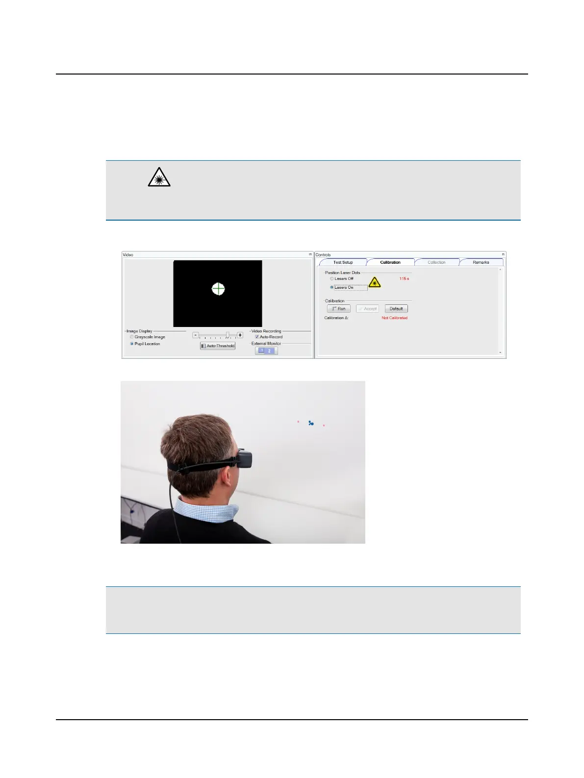 Caution• During this procedure both lasers will turn on. Do not look directly at the lasers. Use of controls or