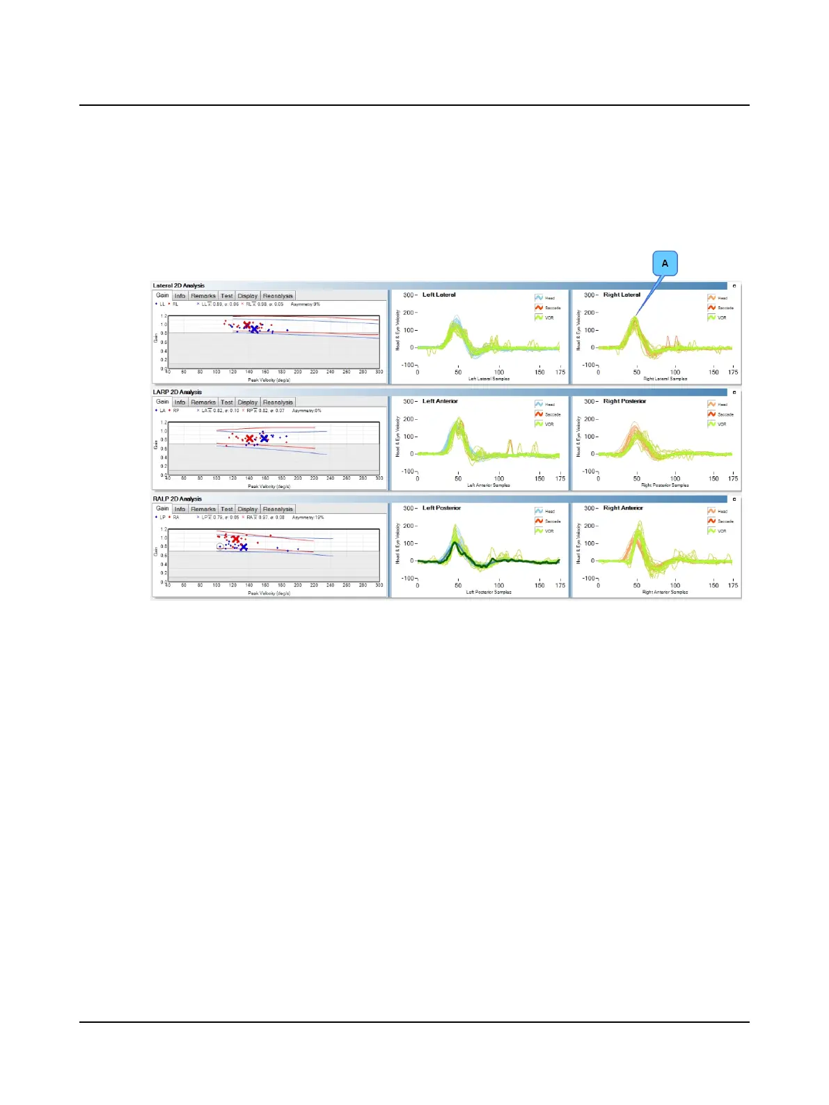 In this example of head impulse data, both sides are within normal limits. Looking at the Gain graph the data points are all