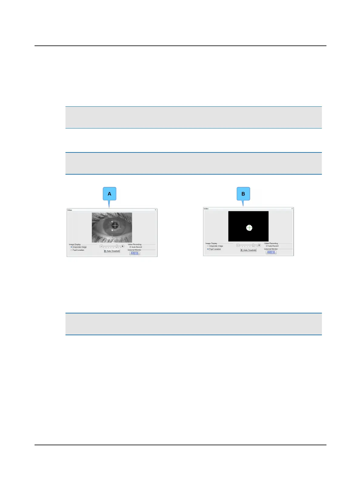7. In the Video window, choose the type of image displayed: Grayscale Image (A) or Pupil Location (B).