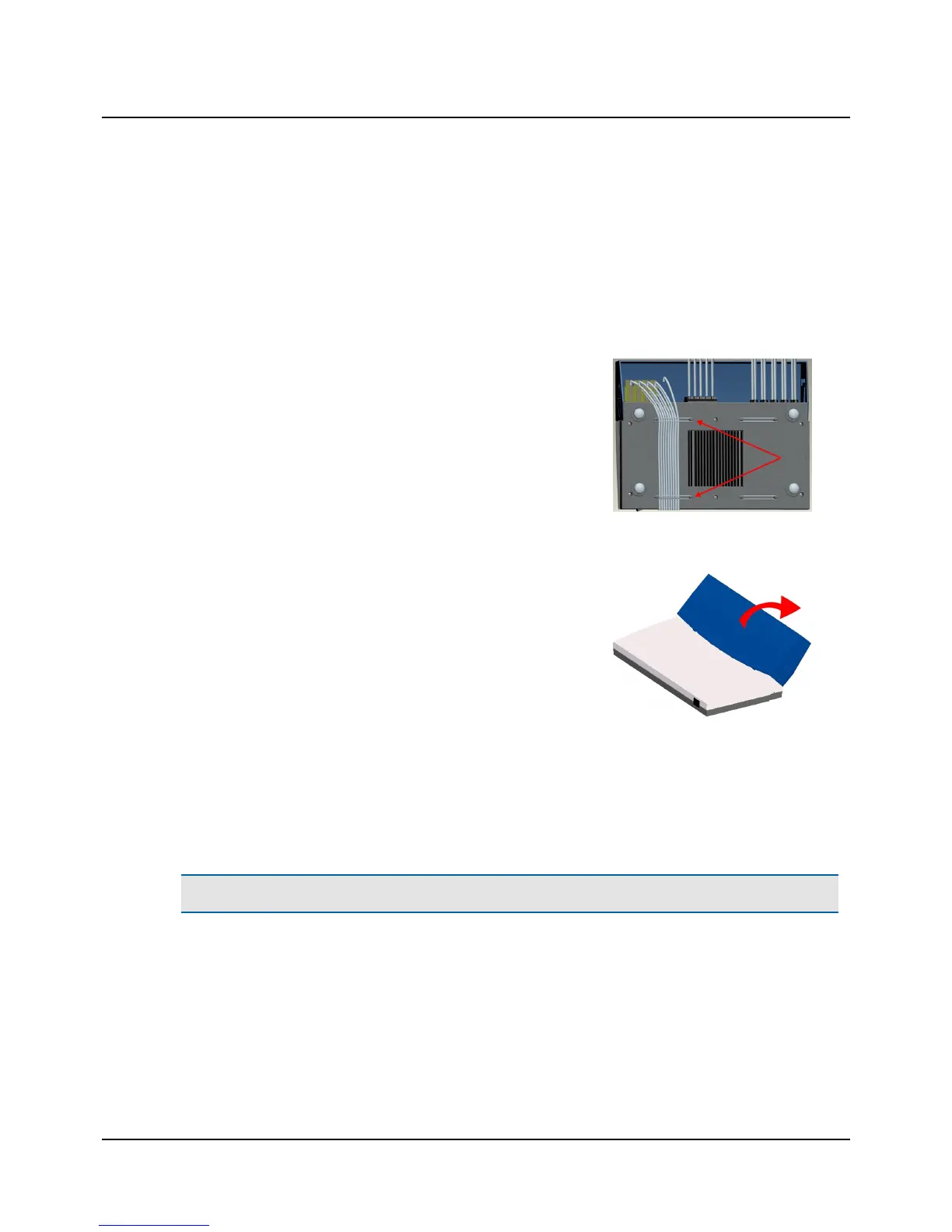 1. Remount the cable cover by inserting the blue tags of the cable cover