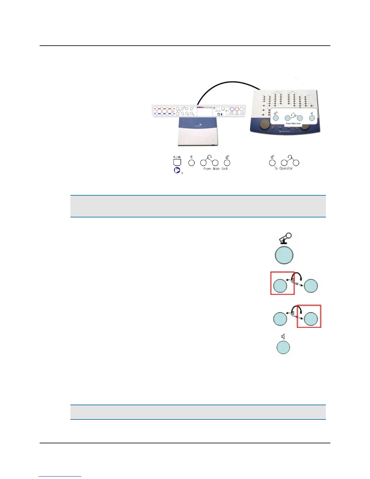 • Connect the gray cable in the cable bundle from the Operator monitor speaker socket