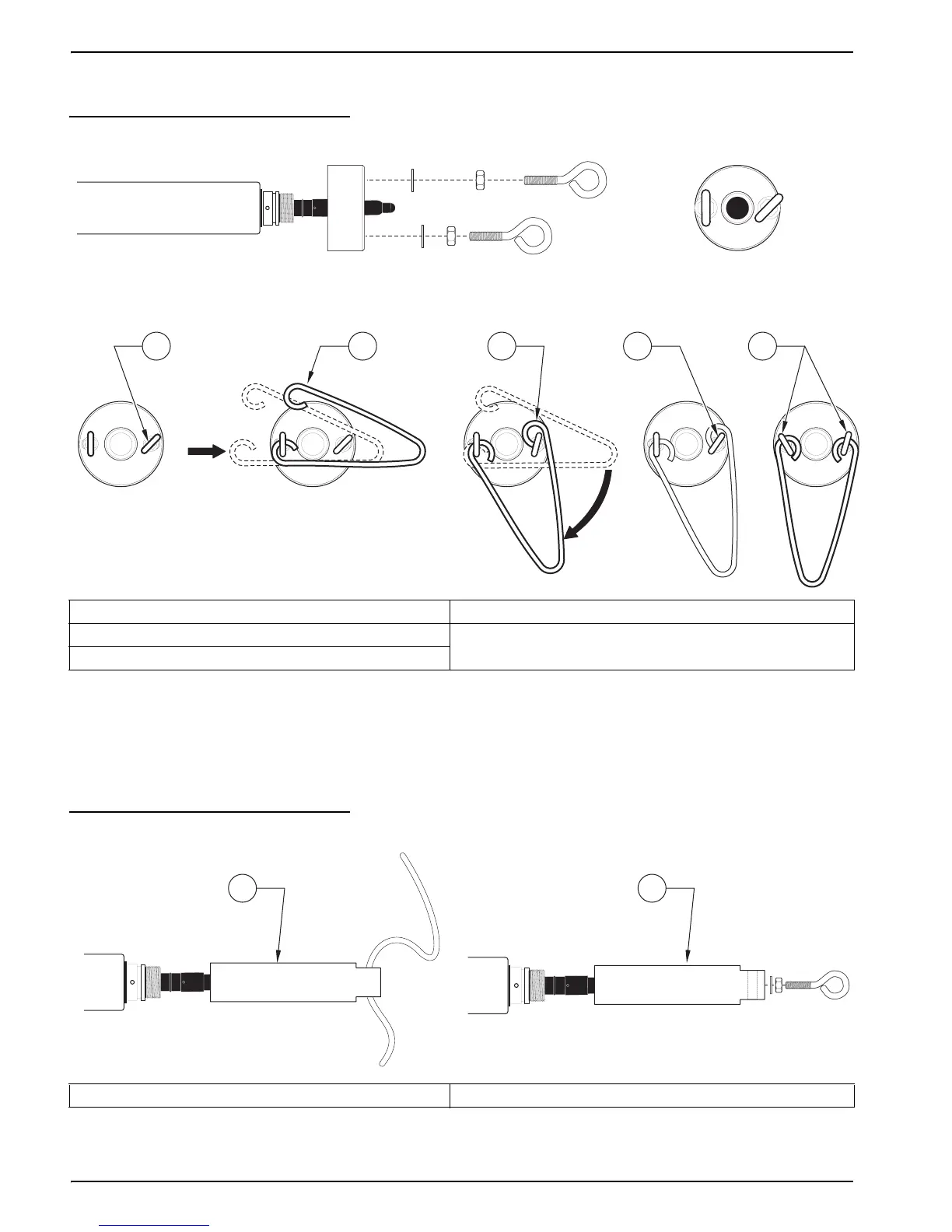 2. Hook the bail into the eye bolt as shown. 5. Finish rotating the eye bolts until the bail cannot