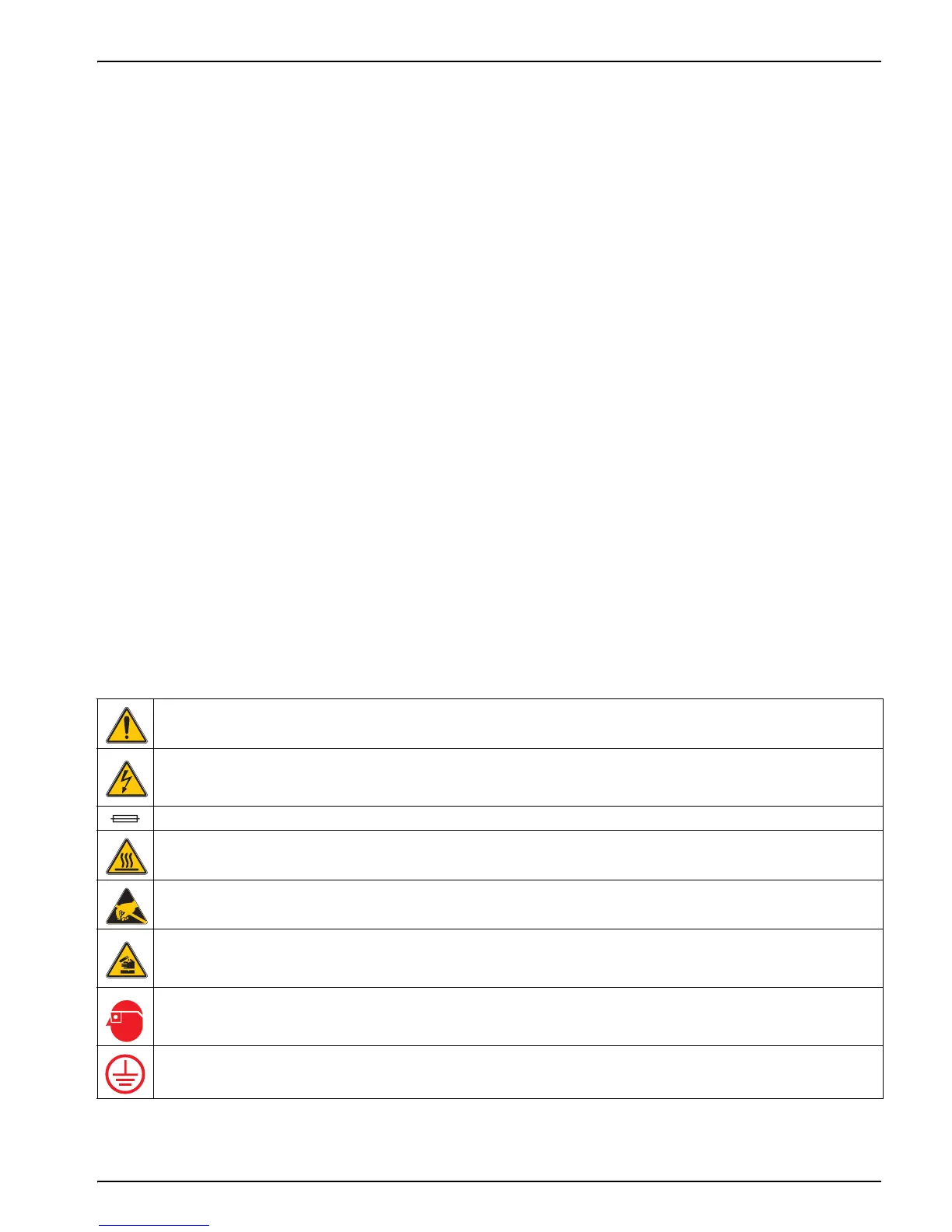 This symbol, when noted on the product, identifies the location of a fuse or current limiting device.