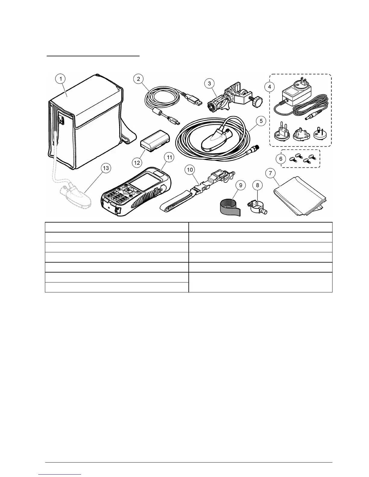 4 Battery charger, 100–240 VAC 11 Portable meter