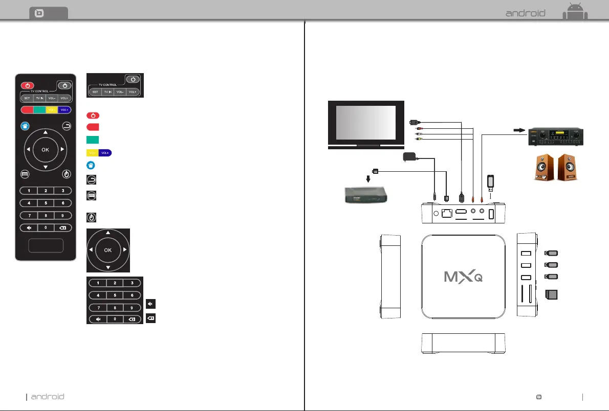 OTT MXQ - Av 连接; Hdmi 连接; 遥控器说明