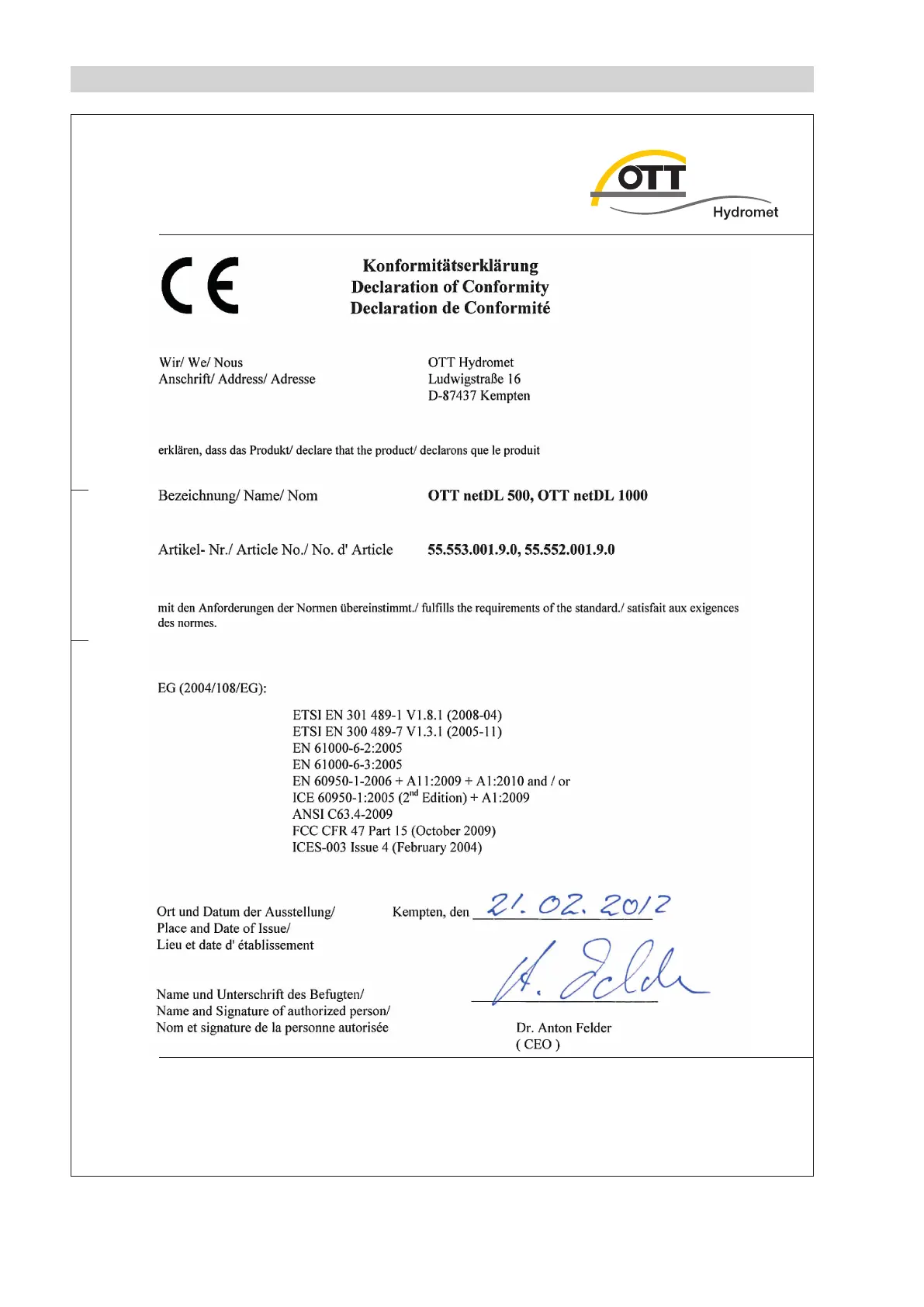 Geschäftsführer: Dr.-Ing. Anton Felder, Jörg Mayer, Cornelis Johannes Maria van Ophem