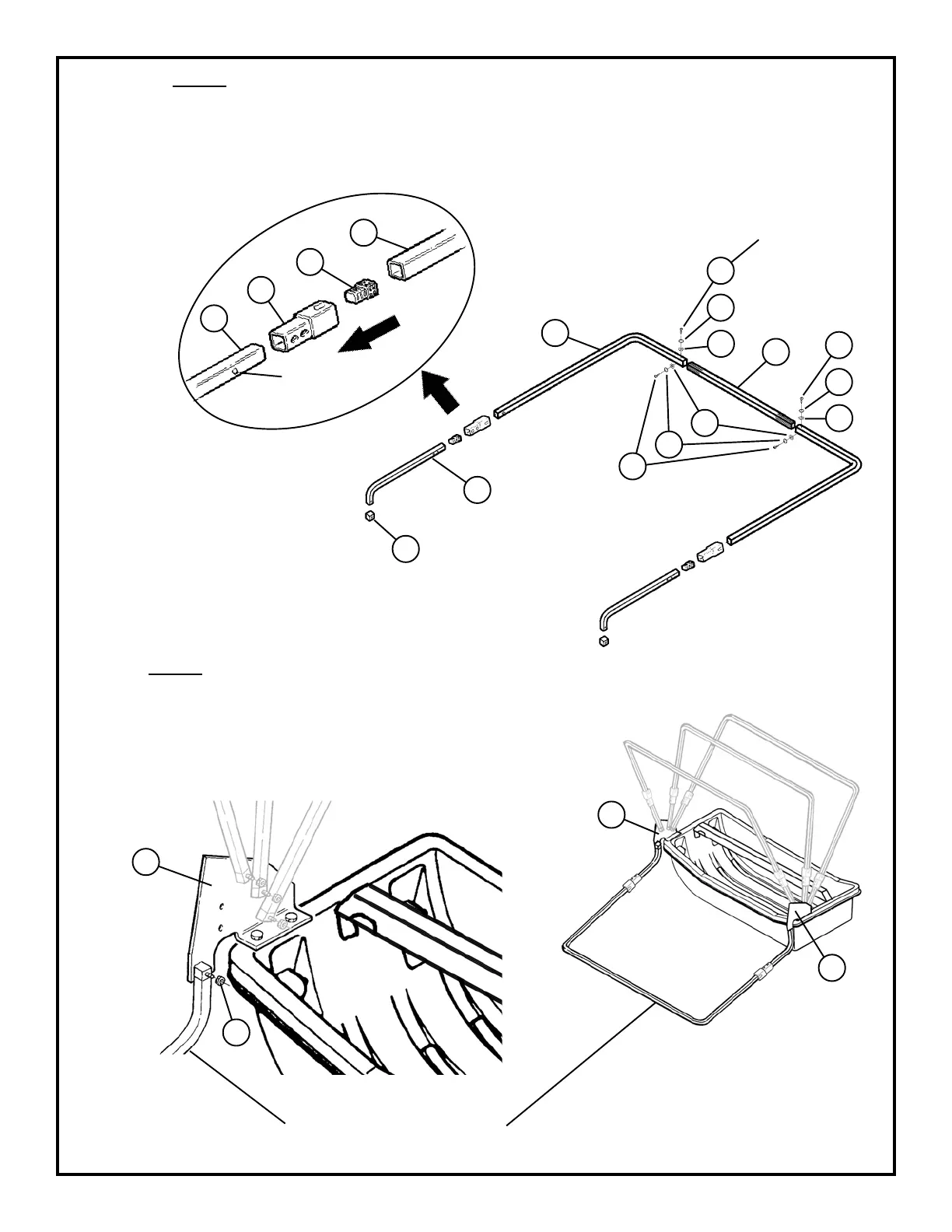 in as you slide over the bar). Insert the black plug (Item 23) into the main frame extension bar (Item 9). Insert